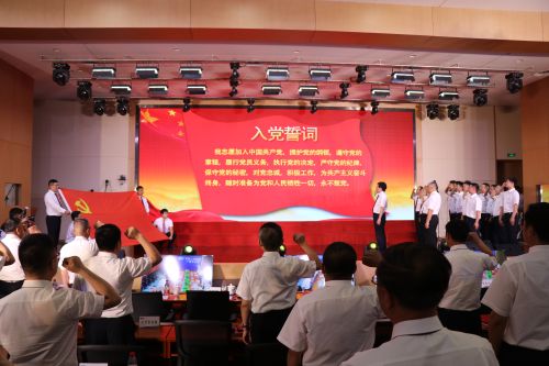 公司領導為黨員代表頒發了政治生日賀卡,同時為預備黨員代表佩戴了黨徽。預備黨員進行入黨宣誓,全體老黨員重溫了入黨誓詞。頒發政治生日卡這一環節,讓全體黨員更加深刻感受到政治生日的莊重與嚴肅,對于每一名黨員來說意義重大,值得永遠銘記。